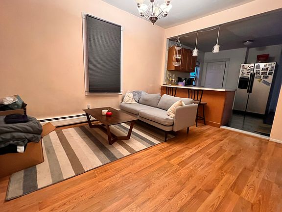 Notable amenities include a ceiling fan, a dining room, hardwood floors, high ceilings, a living room and a modern bath. Rent includes municipal water. The modern eat-in kitchen includes a dishwasher and electric range. Available Now.