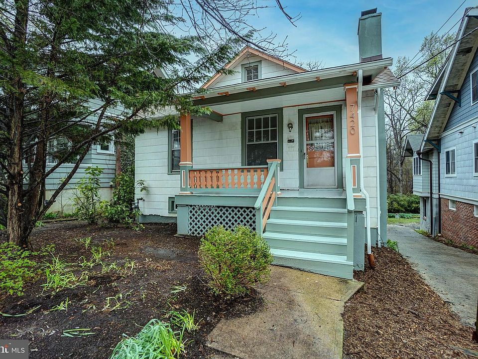 Wonderful vintage bungalow with period accents, ready for its next steward! Traditional porch with beadboard and unique balusters welcomes you in. Main level features high ceilings, narrow-plank hardwood flooring. Living room with fireplace. Tidy kitchen ready to be opened up. Two right-sized bedrooms on main level. Walk-up to half level. Large lower level with high clearances and garage which walks out to backyard, overlooking Opal Daniels Park. Your opportunity to shine up a historic Takoma Park gem, (deemed a Contributing Resource by Montgomery County,) just steps to the Junction and its shops and restaurants, parks & playgrounds, and an easy stroll to schools K-8 and metro!