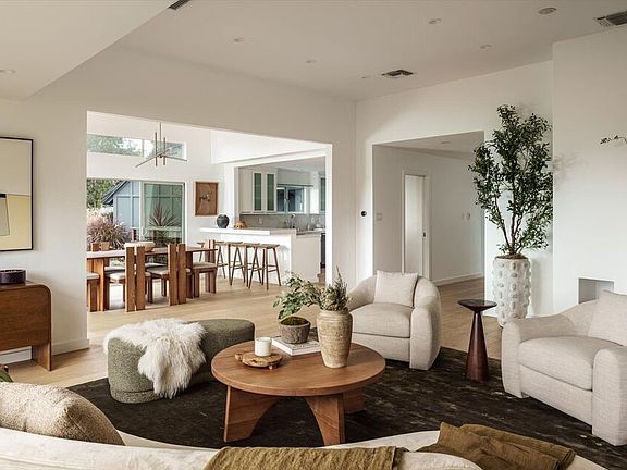 Tucked along a coveted cul-de-sac off Mulholland, 7420 Cervantes Place opens to sweeping canyon and city views from the moment you enter. Floor-to-ceiling windows and an open-concept layout frame these vistas throughout the main living areas, flowing into a chef's kitchen designed for both everyday living and entertaining. A second living level opens directly to the yard and spa terrace, offering a spacious and versatile lounge with seamless indoor-outdoor access.Two flat grassy yards and a canyon-facing spa to soak in this exceptional outdoor retreat for the Hollywood Hills. Renovated in 2024, the home blends modern finishes with warmth and ease. The primary suite features a spa-style bath and custom walk-in closet. Located minutes from Runyon Canyon trailheads, West Hollywood dining/nightlife, and Studio City amenities, this home truly balances privacy, design, and breathtaking views.