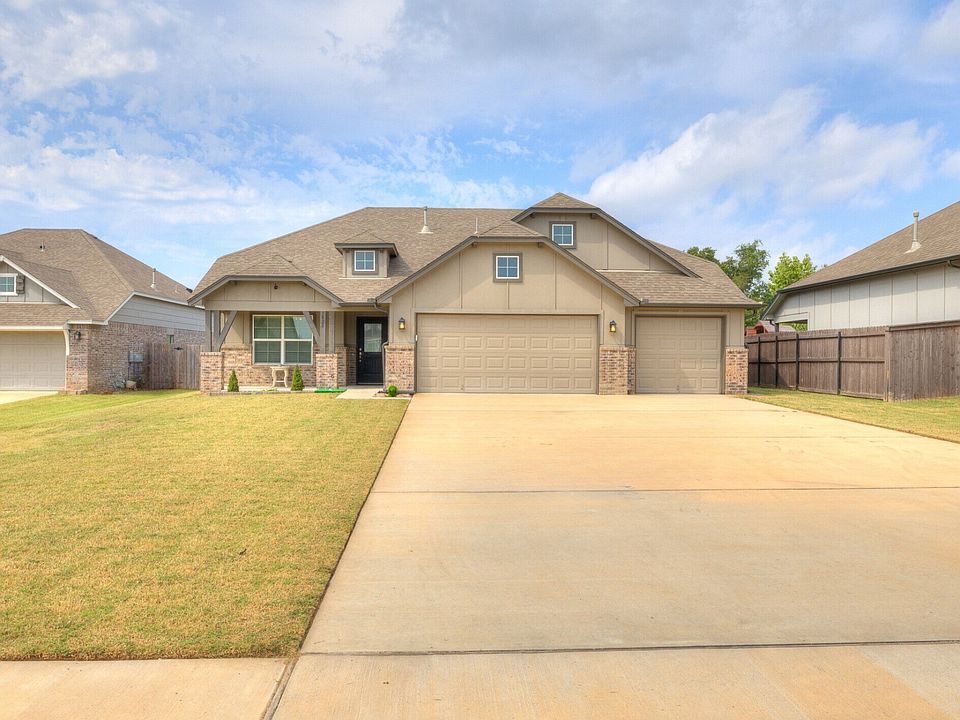 “Gorgeous 2020 One-Level Home in South Broken Arrow!” This stunning 3-bedroom + large Office/Bonus room (or 4th bedroom), 2-bath, 3-Car Garage home sits on a quiet Cul-de-sac in the highly desirable Stone Horse addition featuring 2 POOLS, a Park, and convenient access to the Creek Turnpike. Step inside through a welcoming entryway and into a spacious office with custom Barn Doors. The Open-concept living, kitchen, and dining space offer lifted ceilings which are perfect for entertaining! The kitchen includes a Granite center island, Pantry, and stainless steel appliances. Retreat to the owner’s suite with a spa-like bath featuring a Soaking tub, walk-in shower, dual vanities, and a generous walk-in closet. Two additional bedrooms also include walk-in closets. A separate laundry/mudroom connects to the oversized 3-car garage with extended driveway for extra parking. Energy Star rated for efficiency! Minutes to shopping, dining, and entertainment in South BA or Bixby. Neighborhood access from 121st, 131st, or Olive. Zoned to Aspen Creek Elementary. Don’t miss this South BA gem; IT WON’T LAST LONG!
