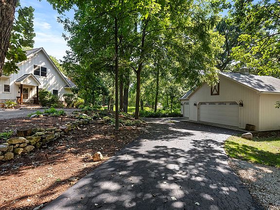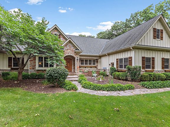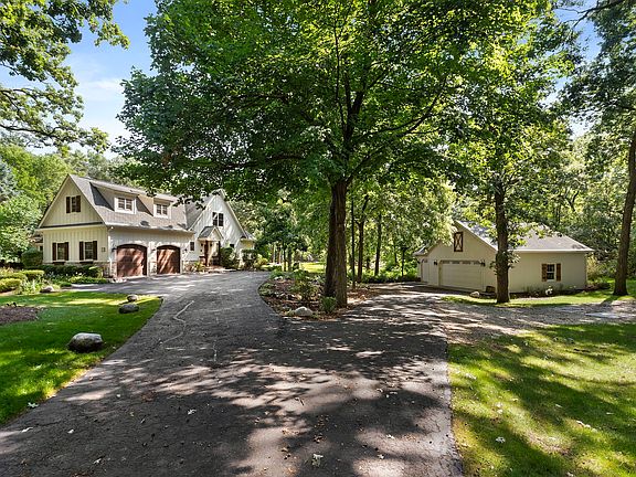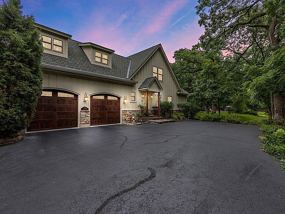 A reclusive retreat with serene elements throughout 2.6 acres of exquisite outdoor amenities that are encapsulated by greenery, nature, and incredible garden beds. A long, gorgeous driveway welcomes guests to a private sanctuary complimented by phenomenal landscaping and a custom-designed home. The architecture pulls you in with every turn from the dramatic foyer unfolding to a 2-story family room with exposed wood beams, a stunning stone fireplace, built-ins, and French glass doors that lead to a composite deck. This exceptional room is brilliantly designed to open to the dining room while showcasing more exposed wood beams, and a one-of-a-kind fireplace complimented by built-ins that surround the individual hand-painted stone accents. Just off the dining room is a gorgeous 4 seasons room with panoramic views of the yard. On the opposing side of the dining room is an exceptional custom-designed kitchen with newly refined 42" green cabinetry, granite countertops, a 6- burner Viking Range, a genius reverse osmosis line running directly to the Keurig, Fisher and Paykel double dishwasher and sprawling breakfast bar. The main floor also offers hardwood floors fabricated on site from previous trees that resided on the property, private office with built-ins and views of the front yard, 1st floor primary suite is on a separate wing with tray ceilings, incredible views, access to the composite deck, and a spa-like primary bathroom. No expense was spared on the primary bathroom with a steam shower, Jetted tub with multi-color lights, double vanity, and walk-in closet with custom organizers. On the opposite end of the main floor is 2 generous additional bedrooms that share a proper Jack and Jill bathroom with a single vanity separate from the shower/tub. The second floor is equally as impressive with a wide hallway that leads to 2 more bedrooms each with charming roof designs and spacious closets, a full shared bathroom, loft area with built-in bookcases overlooking the 2-story family room, large storage closet and attic access. The fully finished walkout lower level features the 6th bedroom, full bathroom with hand selected stones from Lake Michigan used as tile, craft room, gym, theater, 2nd kitchen, media/game room and 3rd fireplace. The outdoor amenities are unparalleled with an attached 2-car heated garage, a separate detached 3-car heated garage, a 2-story barn, and a saltwater pool installed new in 2017! The pool is fenced-in and finished with a stone paver patio, and slide! Additional amenities include a whole house sound system with control panels in individual rooms, security system, invisible fence, whole house generator, new top of line garage doors in 2020, new tankless water heater in 2019 and a full Kinetico water softener and reverse osmosis system, and the whole home was just painted on the inside in 2024. Near Metra station, shopping, entertainment and so much more.
