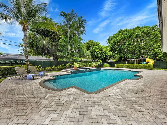 Discover modern luxury in this beautifully renovated 3-bedroom, 2-bathroom home in the heart of Pinecrest. The interior boasts brand-new wood floors, a sleek kitchen outfitted with top-of-the-line appliances, & fully updated, stylish bathrooms, seamlessly combining elegance & comfort. The expansive, private backyard is a perfect retreat for relaxation & entertainment, featuring a covered terrace, a family-friendly saltwater pool with dual shallow ends, & a heated jacuzzi for year-round enjoyment. A durable metal roof ensures long-term value for the property. Additional features: a spacious two-plus car garage, new Trane 4-ton AC system with updated ducts, ADT alarm system, SWAT Anti-Mosquito system, & a BOSE audio system, ideal for outdoor gatherings.Located near top-rated public schools