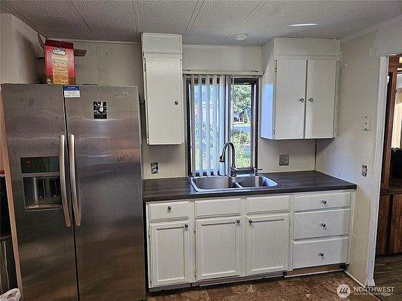 Welcome to this spacious 2-bedroom, 2-bath home just 10 minutes from Bremerton—perfectly positioned for both convenience and comfort. Inside, you’ll find a wide-open kitchen with plenty of counter space and a double sink, ideal for cooking and gathering. The large primary suite includes a full private bath and walk-in closet, offering a peaceful retreat at the end of the day. A cozy wood-burning stove brings extra warmth during chilly months, while the expansive yard is ready for summer get togethers, gardening, or play. Park approval is required for residency.