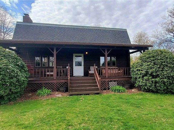 Impeccable 10 acres comes with this 3 BR, 2 BA Log Cabin. Just a few miles from Salt Fork State Park, this property is a perfect year round or vacation home. Large Detached 2 Car Garage w/ lien-to attached for more storage. Enjoy the park-like setting on your front or back porch, or maybe in the hot tub! No worries about a power outage with the back up generator that remains with the property. Upon entering from the mud room, the Kitchen offers plenty of storage & bar w/open concept DR & LR w/stone gas fireplace. 1st & 2nd floor Baths for convenience. 3 BR's, which include the Oversized Owner BR on the 2nd Level. Walk-out Basement w/ 4th Bedroom & Family Room. Boiler Heating System, 2 Wells, Newer Septic & much more! Call your agent today for a showing on this Beautiful place before it's gone!