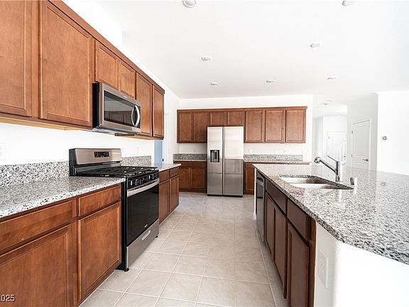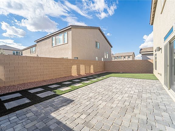 Brand new, never-lived-in home located in the desirable Southwest Las Vegas area. This spacious new construction features a bright open-concept layout with a large great room that flows into the modern kitchen complete with granite countertops, stainless steel appliances, rich cabinetry. Upstairs offers an oversized loft, generous bedrooms, and a luxurious primary suite with dual sinks, walk-in shower, and a large walk-in closets. The finished backyard includes pavers, artificial turf, and desert landscaping for low-maintenance enjoyment. Washer, dryer, refrigerator, and window blinds are already included. Conveniently located near shopping, dining, and freeway access, this home is truly move-in ready.