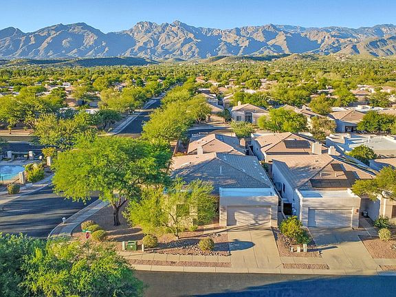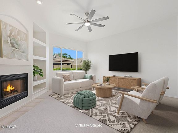 This 4-bedroom, 2-bathroom split-bedroom floor plan home sits in one of the most sought-after areas in Tucson...just steps from Frost Gelato, the brand-new Figs Oven, and the endless recreation of Udall Park! From walking trails and pickleball courts to swimming, a huge dog park, and weekly community events like the Heirloom Farmers Market every Friday, everything you need is right outside the gates of Rancho Esperero.Inside, the home is fresh and move-in ready with thoughtful upgrades throughout: new carpet, fresh interior paint, stainless steel appliances, updated light fixtures and ceiling fans, epoxy-coated garage floor, and a tankless water heater. The main living area is bright and inviting with large windows, gas fireplace, entertainment niche, and seamless flow between the kitchen, dining, and living room. High ceilings throughout enhance the open, airy feel. The spacious primary suite offers a glass-enclosed shower and a very large walk-in closet with organized shelving. Outside, the north-facing backyard is designed for easy maintenance and features a flagstone patio. Set on a corner lot directly across from one of the community's three pools, this is one of the best opportunities in Rancho Esperero!