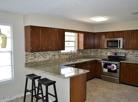 GORGEOUS TOTALY REMODELED HOME in desirable LOCATION near the JACKSONVILLE University, NORTH FL UNIV , MAYO CLINIC, DOWNTOWN, and THE BEACHES. BEAUTIFUL GRANITE COUNTERS AND STAINLESS APPLIANCES IN kitchen with 16'''' tile floors and cherry cabinets, upgraded rich laminate floors throughout, formal dining and living, beautiful lights, fixtures, window treatments throughout, double insulated garage door, this home looks AND FEELS BRAND NEW with rocking chair front porch and nice screened porch overlooks PRIVATE FENCED YARD. YOU ARE GOING TO LOVE THIS HOME! Newer AC and Roof.