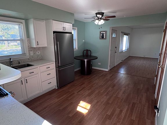 Welcome to this very well maintained 3 bedroom ranch with an oversized 2.5 insulated and air conditioned garage that backs up to a wooded backyard. The list of newer items include: furnace and ac were replaced in 2022, new garage door springs, new garage windows, newer asphalt driveway, newer garage door,, vinyl windows throughout, newer vinyl siding, newer front and side doors and screen doors, and newer flooring throughout the home. The kitchen has a pantry with adjustable shelves. Kitchen was recently updated with new appliances, and fresh countertops. The garage is a mechanics dream/man cave with ample space for tool chests and room to setup TVs and stereo equipment. Off the garage is a large covered patio that is perfect for hosting parties and a built in firepit is near there as well. The backyard has no neighbors behind you, just mature trees. This home is close to schools, parks, expressways, and Chicago. Friendly neighbors and quiet neighborhood.
