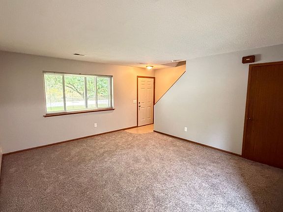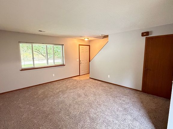 Freshly painted and new carpeting throughout! Main floor features living room, kitchen with dining area, main floor laundry with gas or electric hookup for your own washer/dryer and half bath. Upstairs has two bedrooms and full bath. One stall garage.