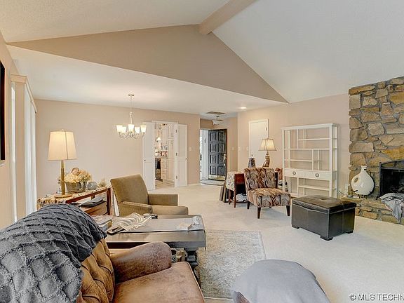 Hidden gem in great gated community with pool and mature trees. Single story home with secluded feel. Sit out back under the large trees and enjoy the sounds of nature. This home has a great living room with fireplace, enclosed entry area, updated kitchen and counters, large storage as panty just off kitchen. Primary bedroom has two great closets. Other bedrooms have nice walk-in closets. The garage is over sized with plenty of room. Exterior door and windows new, hot water tank new, HVAC less than 7 years and serviced regularly. You would never know this neighborhood existed and your right next to ORU. It's a must see to fully appreciate.