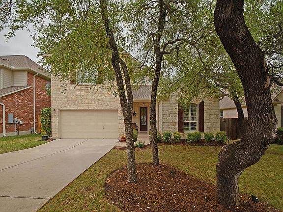 Unique open floor plan on quiet street in Circle C West. Great curb appeal with big trees out front. Wood floors through out the house. Open floor plan with vaulted ceilings and tons of natural light. Open kitchen with granite counter tops, double oven, and gas cook top. Plantation shutters. Large upstairs game room. Large master and master bath.Guest bedroom down. Surround Sound through out.Beautiful pool out back and the house backs to a green belt.The original glass door without doggy door is available.