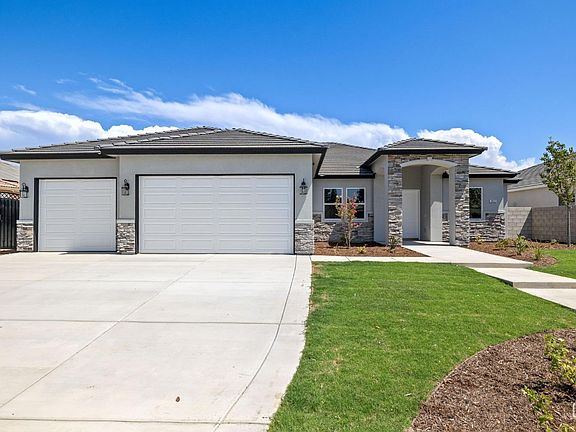 Snow Creek New Construction With Paid Solar! This beautiful home features 4 bedrooms, 2.5 bathrooms, a split wing floor plan with 3 car garage. Large kitchen includes a peninsula island, farmhouse sink, stainless steel appliances, double ovens, pantry, and quartz countertops throughout. Luxury Vinyl flooring in living areas. Luxurious Primary suite with a separate tub and shower, dual sinks, and 2 walk-in closets. Laundry Room includes a sink and extra cabinets. White cabinets throughout, fireplace, stone accents on exterior, sliding glass door which leads to the large covered patio and block wall surround. All of this on approx. 10,454 sq. ft. lot with paid solar! Other lots available! Contact for more details!