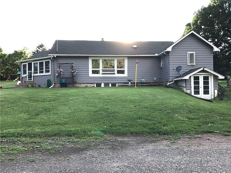 Come take a look at this beautiful 1673 sq ft ranch style home located on a private 1.2 acre lot. This home is perfect for entertaining with a large kitchen and huge living room. 3 Bedrooms, with a possible 4th or a den/office , with a bathroom and dining room that have both been nicely remodeled. Along with new flooring in the entrance way, and new furnace. Walkout basement that would make a great workshop, along with the detached 1.5 car garage w/ power!
