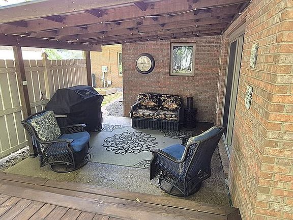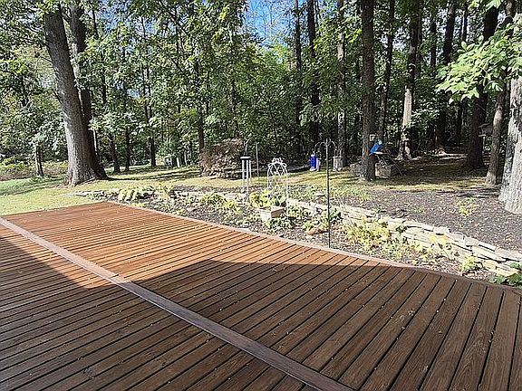 The great room has 18' vaulted ceiling and a cozy stoned fireplace. The kitchen is huge and features breakfast area, planning desk, large island bar, granite counters, pantry cabinet w/pull out drawers and stainless steel appliances. Off the kitchen is the 1/2 bathroom and formal dining or living room which is currently used as an office. There is a vaulted sunroom off the kitchen that overlooks the park-like wooded back yard and steps out to the covered patio and large deck where you can enjoy the beauty and wildlife.