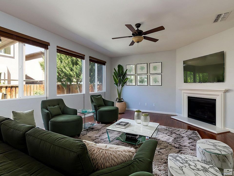Seller's credit available to buy interest rate down or for closing costs! *** Welcome to 7422 Windswept Loop, your perfect home in a gated community at the Foothills in Wingfield Springs! This charming corner lot features low-maintenance landscaping and elegant Brazilian Hickory floors throughout the first floor. Enjoy a half-bath, formal dining room, and a cozy family room with a gas log fireplace—ideal for gatherings.The spacious kitchen leads to a covered Trex deck, perfect for year-round enjoyment. Upstairs, the bright primary bedroom features dual windows, along with a versatile loft, three additional bedrooms with generous closets, and a well-equipped laundry room.Located minutes from Golden Eagle Park's trails and the Red Hawk Golf Course, this home offers both comfort and convenience. Don't miss your chance to make 7422 Windswept Loop your next home!