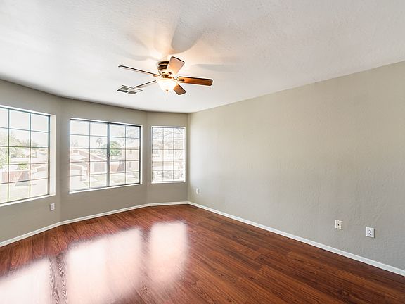 Stunning turn-key home in beautiful Mesa! Step inside and immediately fall in love with the attention to detail, glossy wood like floors and neutral paint throughout. Your chef's kitchen has gorgeous countertops, a convenient hanging cookware rack, sleek appliances, and a functional island. Your living room is spacious and bright, filled with natural sunlight and excellent square footage. Your master bedroom has a lovely bay window, perfect for curling up and reading a good book. Your lavish master bathroom has a gorgeous custom tile shower and jetted bathtub. Outside you can run and play on your green lawn, kick back under your shady covered patio or play yard games in your sandpit. Check out this home today; you will not be disappointed!