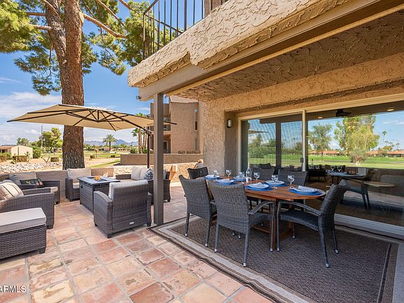 Enjoy two bedrooms and two baths, including a generous primary suite with a walk-in closet and private patio access. Outside, relax on a gorgeous patio with views of both Camelback Mountain and McCormick Ranch Golf Course with offering both an upscale BBQ and fire pit. Take advantage of the nearby walking and biking paths that wind through the community.