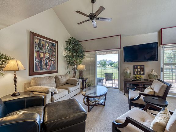 GOLF COURSE LOCATION! Available now through December, 2024. Mountain and Golf Course Views. Nicely appointed 3 Bedroom, 2 Baths, Updated Unit, 3rd Bedroom has a Murphy Bed plus an Office area. This home is very Nice, Bright and Spacious. Ceiling fans in all rooms, 2 Car Garage, community offers pools and club house, easy access around the valley.