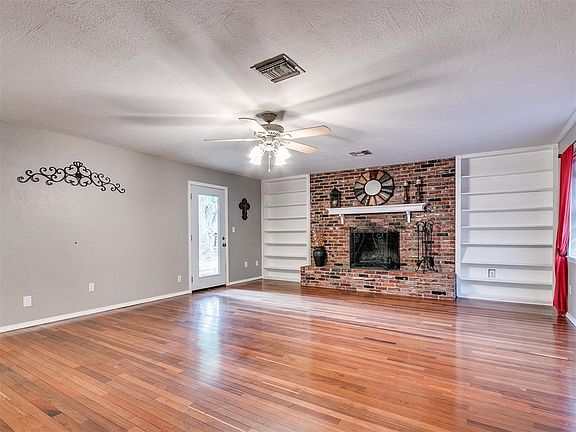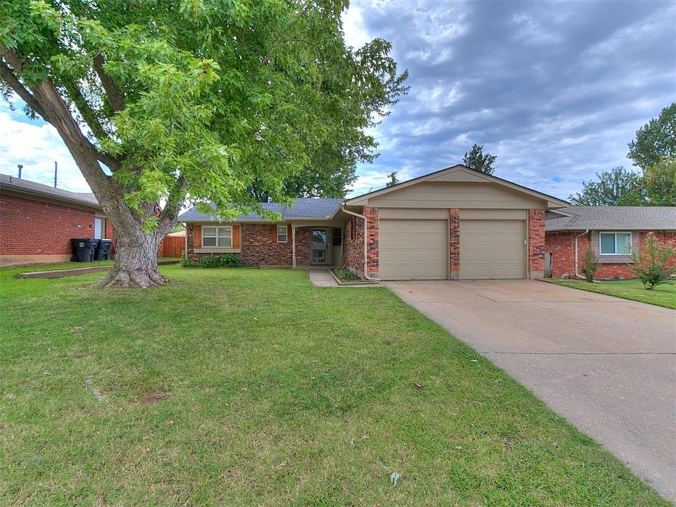 Darling home in a GREAT LOCATION! So many upgrades to enjoy with this very well maintained home! Nestled in a well established and taken care of neighborhood, you will love the large fenced yard with beautiful mature trees! Offering a nice primary bedroom w/half bath and 2 ample sized secondary bedrooms, all with newer carpeting, paint and ceiling fans! Wonderful kitchen with updated cabinets and nice new appliances! Large dining area adjoining the kitchen area. The large living room with lovely wood floors is one to boast about! Beautiful gas log brick fireplace with tall double built-in bookshelves! Very nice wood fence encloses the large backyard for the kids and/or animals to play! Double car garage and nice storage building. Roof/guttering and hot water tank new in 2022. New paint on the exterior of home. This home is in Putnam City school district and so close to schools, shopping and entertainment! Just 8 minutes from downtown OKC and a short drive to Lakes Hefner and Overholser and 1/2 mile to Lyon Park! Bring your buyers today!