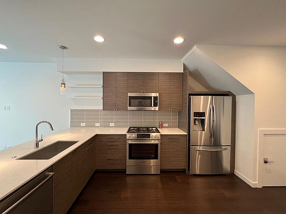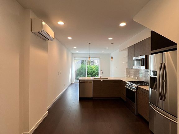 Just 2 blocks from Green Lake, on a quiet residential street, this quality built townhome has 2 Bedrooms and 2 Bathrooms. It's located in a 14 townhome community facing a courtyard. Premium materials consist of hardwood floors, quartz counter tops, mini-splits for heat and A/C that provide comfort and style. Open concept kitchen, living room, and dining space. Primary bedroom suite with large double closet and en-suite bathroom with double sink vanity. Second Bedroom. Laundry closet with LG washer and dryer. Hallway closet for extra storage. Sliding doors to private backyard patio. The entertainment sized roof-top deck with views of lake is plumbed for gas. One car parking in back alley. Close to PCC (and restaurants at Green Lake Village), Green Lake Library. 12 min walk to Green Lake P&R 15 min walk to Roosevelt Link Rail Station 3 min drive to I-5 Bus lines: 62, 45, 20 No pets No smoking - 12 month lease - Applicant pays for Zillow background check and credit screening fees - Security deposit equal to first months rent - First and last month due at move in - Renter is responsible for gas, water, and electricity - Renter is responsible for light yard maintenance - Criteria: income is 3x rent, 700+ credit score - Must tour the unit before application will be considered - Renter is responsible for renters insurance as part of the lease agreement
