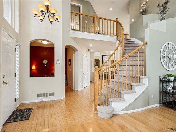 Looking for a beautiful home with a large yard, amazing views & tucked in a peaceful cul-de-sac??? This wonderful property features a spacious backyard perfect for outdoor play, family gatherings and relaxation! Without a neighbor directly behind you, enjoy stunning views of the nearby foothills & gorgeous sunsets right from your backyard and the comfort of your home with all of the big picture windows. Inside, you'll find a warm, inviting layout with ample space for every family member to enjoy. The lovely grand foyer adds to the open flow of this home. You will love the hardwood floors on all of the main level, as well as surround sound throughout the home & out back! The fabulous deck & patio area will provide the perfect setting for hours of entertaining or just quiet evenings relaxing.