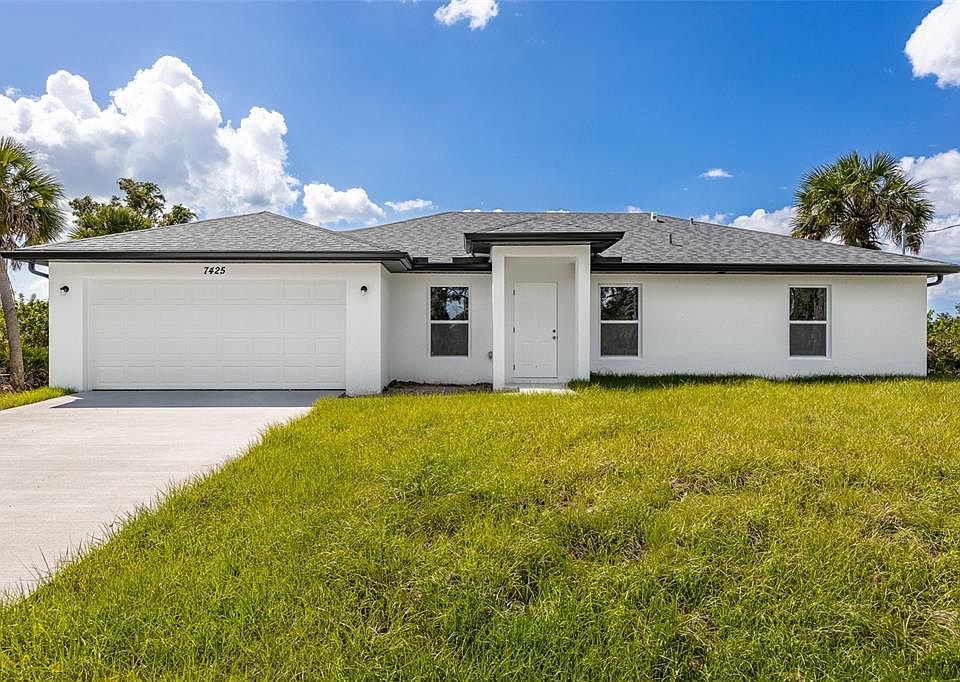 NO Flood Zone and Close to Boca Grande and Englewood Beaches! Builder is offering $5,000 towards closing costs and prepaids! Welcome to 7425 Coburn Street, a stunning brand-new 3-bedroom, 2-bath home offering 1,355 sq ft of modern living in the heart of Port Charlotte, FL 33981. This beautifully designed home features impact windows, high ceilings throughout and vaulted ceilings in the kitchen and living areas, creating an open and airy feel perfect for entertaining or relaxing with family. The bright and functional layout includes a spacious kitchen with generous stone counter space, a comfortable living area filled with natural light, and a primary suite with a walk-in closet and private en-suite bath. Enjoy the Florida lifestyle with a backyard offering plenty of space for outdoor living or a future pool. Located in a peaceful, established neighborhood just minutes from the Myakka River, Gulf beaches, and multiple public boat ramps, ideal for boating, fishing, and nature lovers. Conveniently close to shopping, dining, golf courses, and medical facilities with easy access to US-41 and I-75. Whether you’re searching for a full-time residence, seasonal retreat, or investment opportunity, this home offers the perfect blend of comfort, value, and location. Don’t miss your chance to own a piece of paradise on Florida’s Gulf Coast—ask about the builder’s preferred lender for special incentives!