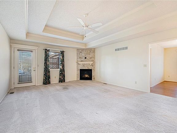 - Features: Carpet, Ceiling Fan(s), Fireplace