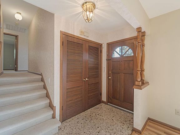 Welcome home to this spacious and inviting Tri-Level in the desirable River Edge neighborhood. Enjoy a wonderful floor plan perfect for everyday living or entertaining. The bright living room features a large picture window and natural fireplace, opening to a dining room with built-in china cabinet. Eat-in kitchen offers an island and plenty of cabinetry. Relax in the cozy family room with two-way fireplace and patio doors to a private backyard with wooded backdrop. Hardwood floors grace the main level. Convenient half bath off main. Upstairs you'll find four comfortable bedrooms, including a primary suite with walk-in closet and full bath. Lower level adds a flex room ideal for office or den plus hang out in recreation room. Move right in and make it your own.