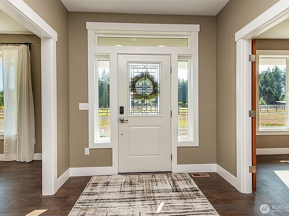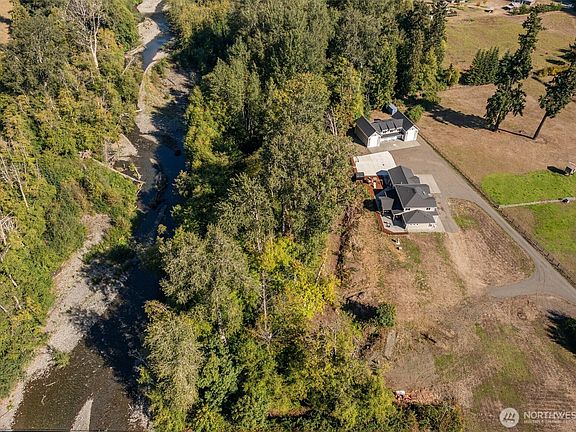 Stunning 3,392 sq ft home on 4.5 acres with 435 ft of private Dungeness River frontage. A chef’s kitchen with expansive island flows into open living with propane fireplace and 4-panel folding doors opening to a 600 sq ft covered patio with built-in fire feature for year-round entertaining. The primary suite offers double walk-in closets, a tiled shower with seat, soaking tub with mountain views, and patio access. The detached “garage mahal” boasts RV/boat bays, shop, and upper storage with roughed-in studio. Trails, playground, basketball court, RV hook-up, and Olympic Mountain views add to the lifestyle. Watch salmon run in the fall with fenced pasture views year-round—just 10 minutes to Sequim and 20 to Port Angeles.