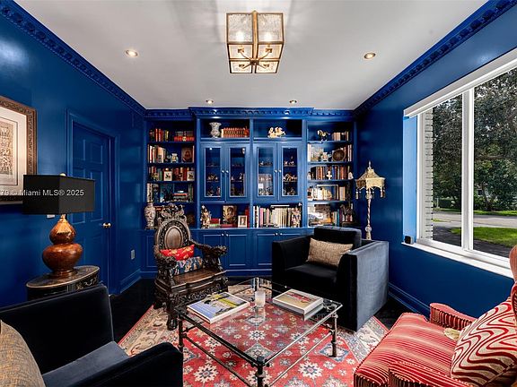 Set on a 21,344 sq ft lot, this stately Colonial-style estate seamlessly blends timeless architecture with modern sophistication. Recently renovated, it offers four generously scaled bedrooms, with three upstairs and one downstairs, a refined study, dual staircases, elegant detailing, and soaring volume ceilings. The gourmet eat-in kitchen is designed for both everyday living and elevated entertaining. Outdoor amenities include a summer kitchen, covered terrace, and heated pool set amid lush, manicured grounds. Additional features include a 4-year-old metal roof, impact glass, impact-rated garage door, 2-year-old generator, and pool heater.