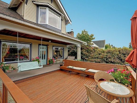 Stunning old world charm home with views of the Puget Sound and the Olympic Mountains! This home will steal your heart. Fabulous new remodeled kitchen, gorgeous living room with a gas fireplace, large formal dining room, 3 large bedrooms on upper level with walk in closets and a full bathroom up, large bedroom suite on lower level. Lots of storage. Beautiful grounds and a great location. Walk to coffee, groceries, Lincoln Park etc. New oversized garage. Large laundry room. Workshop. Many updates