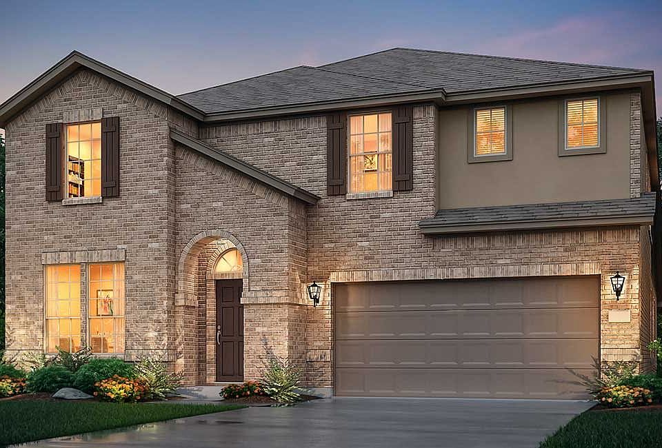 The generous two-story Birmingham floor plan by Village Builders features a welcoming entry foyer, an island kitchen with a walk-in pantry and open breakfast room with a large family room that includes the option to add a cozy fireplace, and offers convenient access to a covered rear patio. The first floor master bedroom features an en suite master bathroom with dual sinks, a separate shower and tub, a private toilet enclosure, and access to a walk-in master closet. The second floor features a large game room, two additional secondary bedrooms, a full bathroom, the option to add a dedicated media room, a fifth bedroom and full bathroom. The Birmingham floor plan also offers the option to add an extended covered patio.