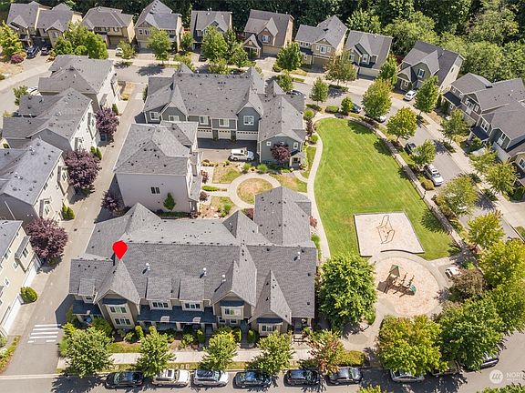 Welcome home to Kimball Creek! This modern end unit 2-story townhouse by Toll Brothers is nestled in a cozy and vibrant community. Open floor plan seamlessly combines the kitchen, dining, and living areas. High-end finishes throughout, central A/C, engineered hardwood floors, Quartz countertops, S/S appliances, kitchen island, gas stove, customized shutter blinds, tankless waterheater. Upstairs features an oversized owner suite, bath w/glass shower & double sinks, closets with organizers. Two additional well-proportioned bedrooms share a full bathroom. The oversized 2-car garage is finished w/ epoxy flooring & additional storage space. Close to parks & trails & Snoqualmie Falls, easy acess to I90 or Hwy 202. Move in Ready, pre inspected!