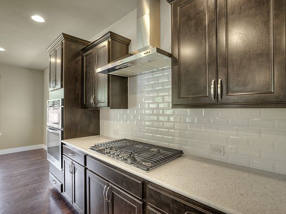 Ready for Move-in! Impressive floor plan features extended hardwoods throughout main level, spacious kitchen with island, quartz counters, full-height tile backsplash & gas cooktop. Fantastic Marmiro stone accents like Ledgestone fireplace surround & brushed marble bathroom vanity. Great room & outdoor living space with inside/outside double-face fireplace. HUGE master with two walk-in closets and five-piece bath. 3/4 bath on main level + oversized den. Fridge included!
