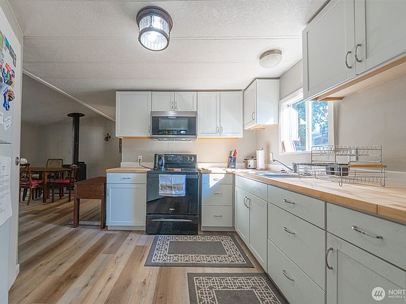 This preinspected single-level home sits in a desirable all-ages park and offers a spacious open floor plan with 3 bedrooms and 2 baths. Enjoy newly remodeled bathrooms, kitchen, and flooring for move-in comfort. The large, fully fenced yard is landscaped and perfect for pets or outdoor living. Driveway can hold 3 vehicles and there is extra parking at back of property. The community is mobility-friendly and within walking distance to the neighborhood park.