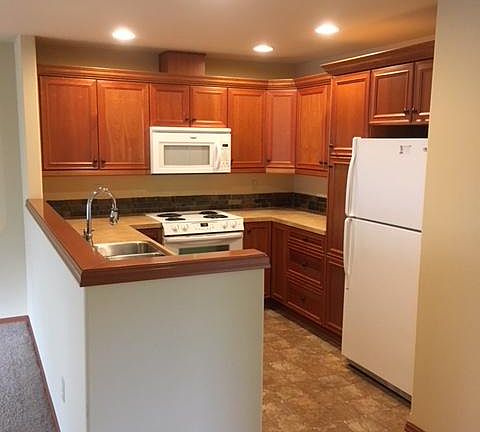 Townhouse style apartments. Two bedrooms, each have their own attached bath plus a half bath on the main floor for guest. Laundry room with full size washer and dryer. Eloquent kitchen design and style that comes complete with all appliances. Gas forced air furnace, hwt and fireplace for best efficiency on major household energy cost. Large two-car garage with opener and two transmitters. Rear deck facing west for best daylight exposure! Water, sewer and garbage billed separately.