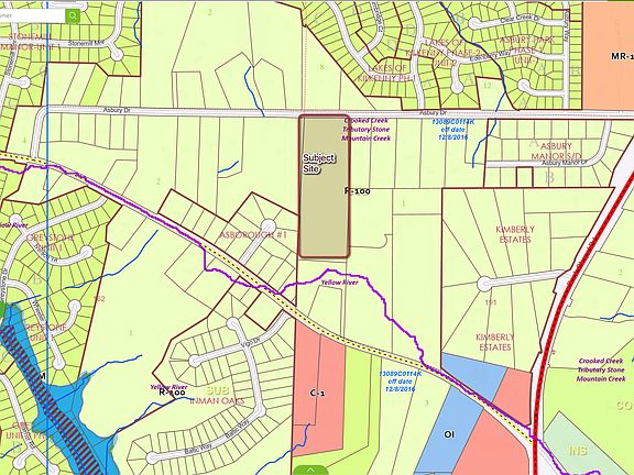 Prime opportunity in Lithonia, DeKalb County, Georgia! This 9.5-acre rectangular parcel at 7427 Asbury Drive (Lot 6) is zoned R-100 and part of the SUB Land Use Plan - 8 Dwelling Units per Acre allowing minimum lot sizes of 15,000 square feet-ideal for subdivision or estate development. The property is high and dry with approximately 364 feet of paved road frontage, offering excellent access and visibility. Conveniently located just minutes from I-20, the site provides a smooth 20-25-minute commute to downtown Atlanta and is close to key amenities, including Emory Hillandale Hospital (5-10 minutes) and The Mall at Stonecrest (10 minutes) for abundant shopping, dining, and entertainment. Nearby routes such as Rock Chapel Road, Evans Mill Road, and GA-124 ensure strong regional connectivity. With established utilities in the surrounding area and proximity to schools, healthcare, and retail, this tract presents an outstanding residential development opportunity. Public utilities and Fiber-Optic Available. Contact listing agent for interactive parcel map.