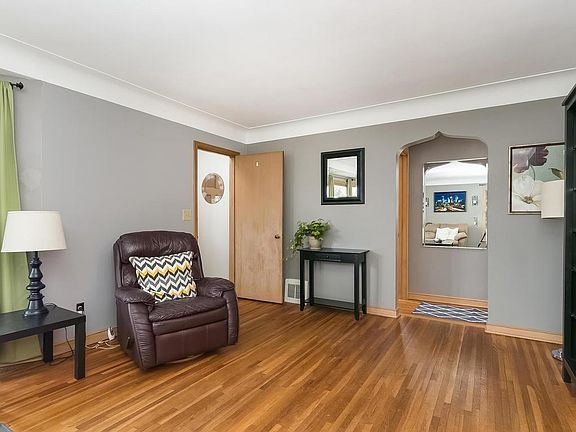 Don't wait to see this charming and affordable gem. Just move in & enjoy the spacious eat-in kitchen, living room with bay window & coved ceiling and woodsy three season porch. The owner's suite was recently finished and features walk-in closet & gorgeous tile bath. Also, don't miss the secret storage space. Pull out the shelving unit in the bathroom wall for a big surprise! New furnace & air, hardwood floors and a fenced backyard. Add more living space in the unfinished basement!
