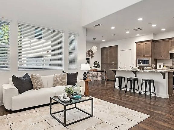 Located in the vibrant Day Creek Community of Rancho Cucamonga! This stunning modern townhome features 3 spacious bedrooms (each with their own bathroom) and an additional 1/2 bath for visitors, offering ample space for comfortable living. With nearly 2,000 sqft, you'll appreciate the open-concept design and abundant natural light pouring in through a wall of windows in the inviting living room.