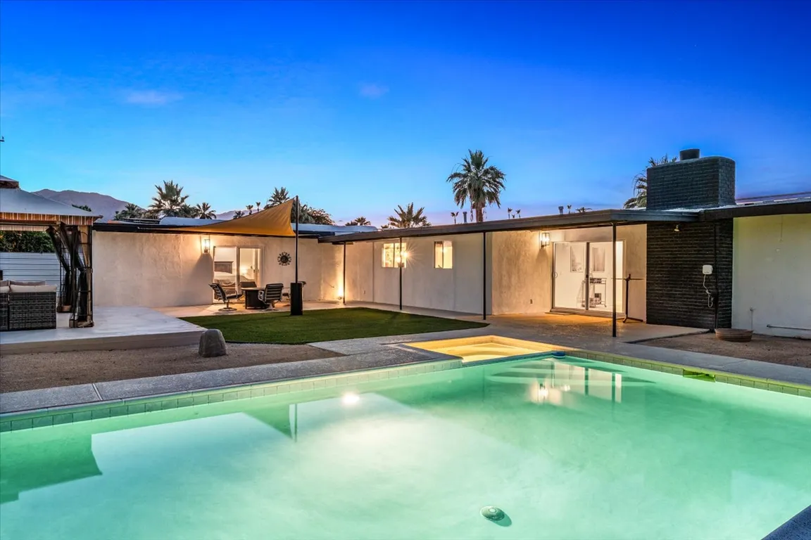 Perfectly positioned in the heart of South Palm Desert, this tastefully reimagined Mid-Century Modern residence offers a seamless blend of timeless architecture and contemporary upgrades. Set on a spacious 1/4-acre lot, the home showcases clean lines, vaulted ceilings, and an effortless indoor-outdoor flow--all set against a backdrop of mountain views and ...