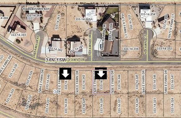 ) and 7412 E Fawn Dr 3810 (Parcel #333-14-341- SQ 10,777 )—are included in one price. Excellent investment opportunity in Kingman, AZ, along historic Route 66! Located in the Valle Vista Golf Course Community and zoned for single-family homes. Large lots with an annual HOA of $124.00.