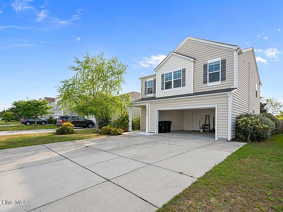 Looking for tremendous value, square footage, and yard space!? 7428 Chipley Drive is the perfect home that features a two-story floor plan, 3 large bedrooms, 2.5 bathrooms, and 2038 sqft. Located in the heart of Ogden in the highly sought-after Reserve at West Bay community. This home was built in 2015 and has been well cared for and maintained. Step inside to find an open and airy floor plan with engineered hardwood floors that flow throughout the main living areas. The spacious kitchen and dining area features granite countertops, stainless steel appliances, a large kitchen island with additional seating, and plenty of cabinet space, perfect for cooking and entertaining. The living room is bright, welcoming, and spacious, with three large windows with views of the generously sized backyard and green space beyond. A half bath is located downstairs for added convenience as well as a mud room off the kitchen that leads to the garage. Upstairs you will find privacy with three full bedrooms including the large primary bedroom & bathroom with double vanities, tub, and walk in shower. The second bathroom is located upstairs which includes a large single vanity and tub shower combo, as well as the laundry room equipped with washer and dryer! This home is equipped with solar panels for energy efficiency, blinds on all windows, and ceilings fans. Rising energy bills will not be a concern as you are in complete control! The large fenced in backyard features a deck and backs up to green space for added privacy and enjoyment. As well as mature landscaping, trees, and azaleas around the home. The large two car garage offers extra storage space as well as a double driveway with plenty of room to park! The neighborhood features sidewalks and is ideally located near all the local favorites like Ogden Park, Mayfair, Wrightsville Beach, and Military Cutoff, providing easy access to everything you need. Whether you're looking for your first home or your next home, this is the one!