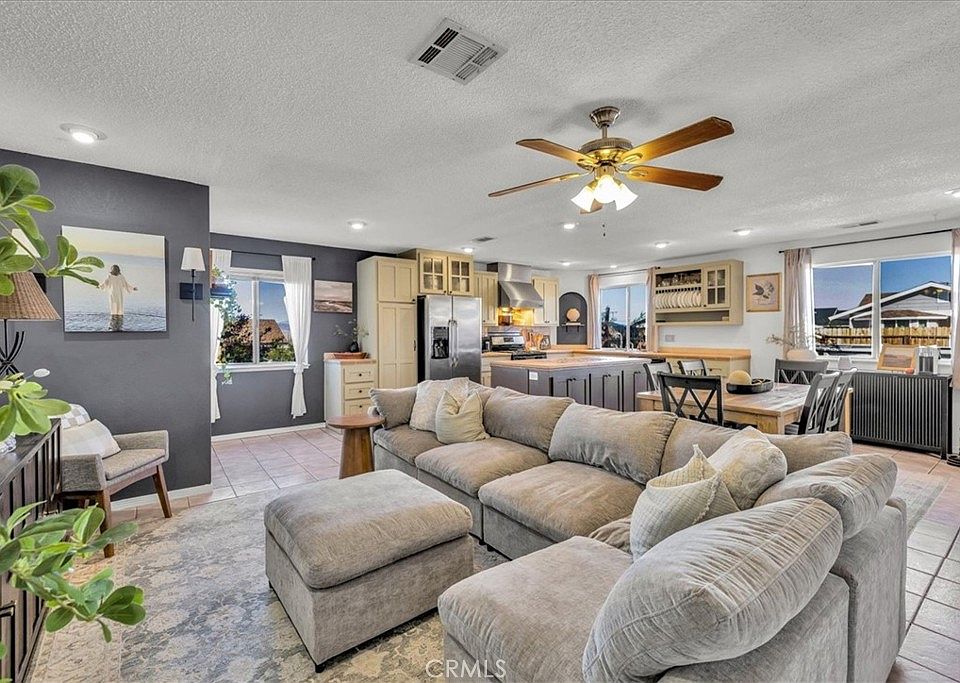 Above-ground poolCustom cabinetryEarth-toned tile flooringAdditional cabinetryFormal dining areaLovely open-concept living spaceStainless steel appliances