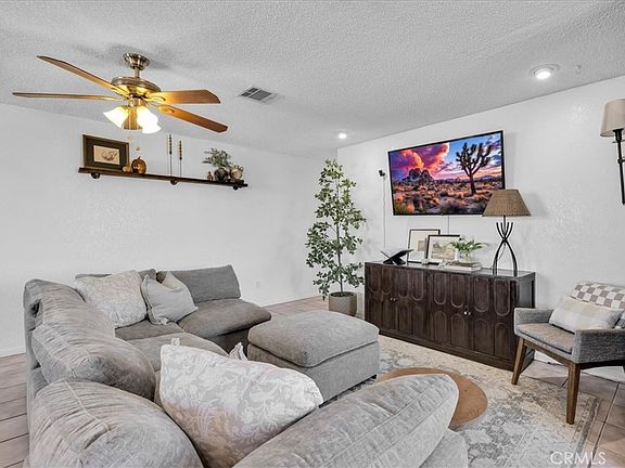 Welcome to 7429 Maude Adams Ave, a beautifully maintained 3 bedroom 2 bath home located in the quiet and desirable Hanson Track neighborhood of 29 Palms (just MINUTES from the Joshua Tree National Park East Entrance)! As you step inside you'll notice the lovely open-concept living space complete with earth-toned tile flooring, recessed lighting and large east facing windows that let in an abundance of natural light. The chefs-kitchen is anchored with an oversized island with tile countertops, amble cabinet & counter space, custom cabinetry and stainless steel appliances. This home's neutral color palette makes it extremely versatile for any decor and style. Directly adjacent to the kitchen you’ll find the formal dining area, additional cabinetry and the access door that leads to the backyard and pool area. The primary bedroom adorns carpeted flooring, a ceiling fan and a sliding glass door for private patio access while the ensuite bathroom includes a single sink vanity with generous counter space & a pocket door that separates the lavatory & walk-in shower. The two additional bedrooms also include neutral carpeting, ceiling fans and share the aesthetically pleasing hall bathroom - complete with a single sink vanity and a shower/tub combo. Not to mention, this home has dual cooling (AC & Swamp), an attached 2 car garage and leased solar panels to keep cost low year round (buyer to assume lease). Outside you'll be delighted to find a fully fenced yard with wood privacy fencing, a large covered patio, an above-ground pool and plenty of space to entertain or relax around a fire-pit on a starry desert night. With close proximity to downtown, schools, shopping, the Tortoise Rock Casino, restaurants and more, all that's missing is you! Come take a look & let this home's charming allure do the rest, your new desert home or weekend retreat awaits!