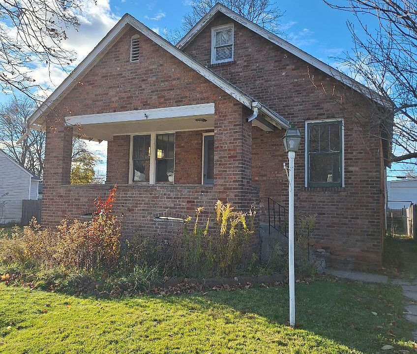 A classic brick craftsman style bungalow with lots of room and architectural features. Hardwood floors throughout, stained glass piano window, fireplace, arched doorways and wide trim. Big garage with brand new roof, double lot and freshly serviced gas boiler. This is the opportunity to bring it back to its former glory and call it home. SO much potential to be sold ''AS IS''. Seller will not offer concessions. Conventional or CASH only. Seller is former Broker