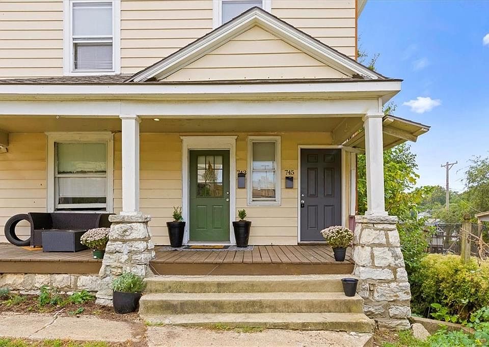 Well-located duplex in the heart of KCK with one unit already producing income and the other move-in ready for an owner-occupant or new tenant. The lower unit (743) is a 2-bedroom currently rented at $850/month, while the upper unit (745) occupies the second floor and a large finished third-level loft that functions as a potential third bedroom or oversized flex suite with tall ceilings and excellent natural light. This upper unit lives more like a townhome than a typical duplex and creates a strong opportunity for a live-and-rent setup.