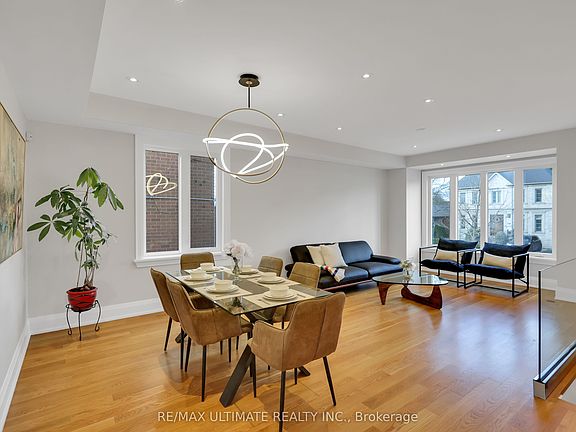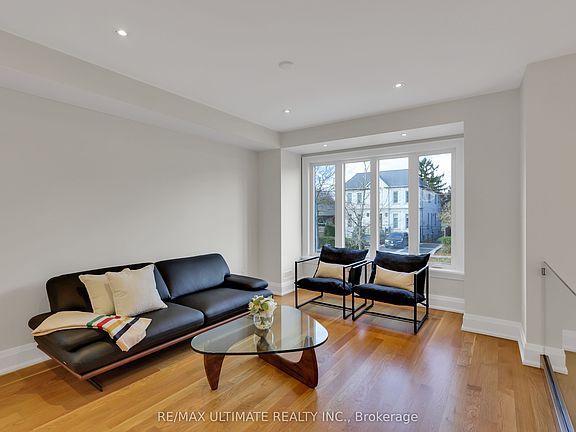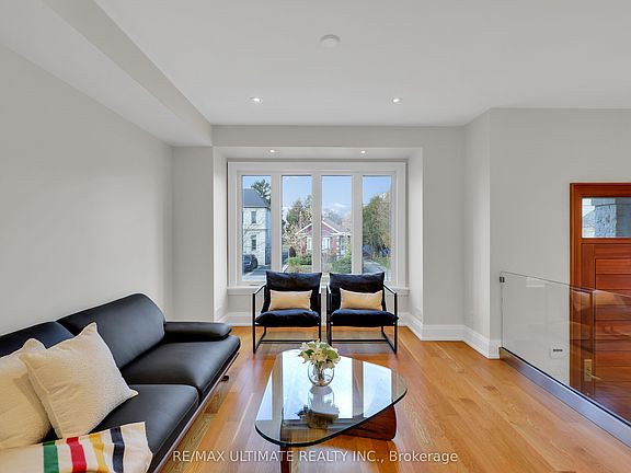 Looking for Classic European Modern in Toronto? You've found it.Built to perfection in 2018, this custom detached two-storey home blends timeless European elegance with modern luxury. Located in the heart of Englemount-Lawrence, just a 1-minute walk to Glencairn Subway Station, it offers unmatched convenience and exceptional craftsmanship throughout.The exterior features an elegant stone façade and a poured concrete foundation, showcasing the home's quality from the moment you arrive. Inside, hardwood floors, glass stair railings, and recessed lighting create a bright, contemporary atmosphere. The spacious L-shaped kitchen includes a centre island and eat-in breakfast area, and flows seamlessly into the formal dining room - perfect for hosting family and friends. The cozy family room with fireplace overlooks the backyard, while a main-floor three-piece bathroom adds everyday practicality. The second floor offers 4 generous bedrooms and 6 bathrooms in total, including a primary suite with a walk-in closet and a luxurious five-piece ensuite, a second bedroom with its own ensuite, plus convenient second-floor laundry. The finished lower level expands the living space with two in-law or nanny suites, each with a separate entrance - ideal for extended family, guests, or income potential. A fully fenced backyard, private balcony and patio, interlocked driveway, and built-in garage with direct access complete this move-in-ready home. Located minutes from Yorkdale Mall, Downtown Toronto, and local parks. The backyard also offers Garden Suite potential.
