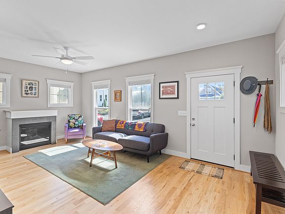 You'll love this wonderful home in the popular Fiori Hill pocket neighborhood! Featuring 3 bedrooms, 2.5 baths, and an unfinished basement with room to grow! Beautiful hardwood floors throughout create a seamless flow. Craftsman-style trim details and top-down bottom-up blinds add thoughtful touches! The living room with a gas fireplace opens to the dining area and kitchen, complete with quartz counters, pantry & stainless appliances. A bright breakfast area which is also perfect for a home office offers access to the deck with peaceful wooded views! The main-level primary suite features a vaulted ceiling, walk-in closet & private bath with dual vanity and a large tiled walk-in shower. Upstairs, both secondary bedrooms have vaulted ceilings, one with a double closet and the other with a walk-in closet & share a full hall bath, plus access to two additional storage closets! The 885 sq ft unfinished basement is insulated and ready for expansion to fit your needs, with a walkout to the patio, fenced yard & wooded views backing to neighborhood trails to walk to town! Two assigned parking spaces are located right in front of the home for added convenience! Community highlights include a Common House with wraparound porch, guest bedrooms, coworking space & a firepit patio; a fenced community garden with raised beds and shed; and woodland trail connections to the Eno River State Park, Occoneechee Speedway, Mountains-to-Sea Trail, and Riverwalk. Enjoy multiple gathering spaces such as Southern Green, Lorentello Park & the Common House backyard with gazebo and firepit. Ample guest parking and convenient access to the Orange County Sportsplex and downtown Hillsborough make this location ideal! In addition, our preferred lender is offering up to 1% in lender credit, which can be applied toward closing costs or to help reduce the interest rate.