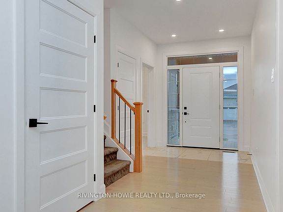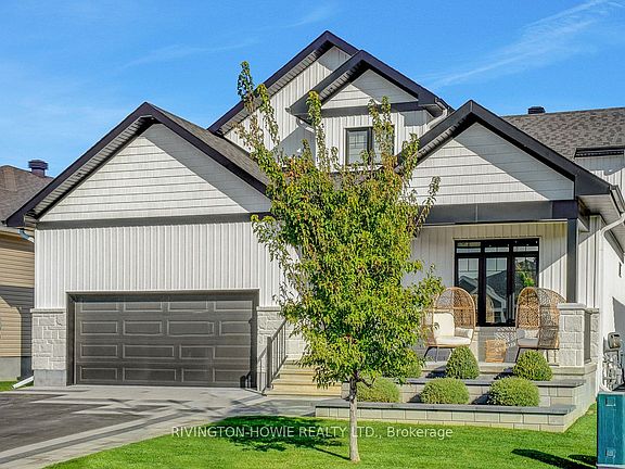 Welcome to this exceptional 2021-built two-story home, ideally located in the desirable Village of Carp. Combining timeless curb appeal with vertical siding and upscale design, this residence offers a perfect balance of elegance and function. The main floor features an inviting open-concept layout anchored by a stunning kitchen with a waterfall granite island, built-in appliances, side-by-side fridge and freezer, pantry, and thoughtful finishes. Flowing seamlessly into the great room and bright breakfast nook, this space is perfect for family living and entertaining. The breakfast nook provides direct access to the resort-style backyard, complete with an inground swimming pool, multi-level deck, interlock patio, pergola, astro turf, and full exterior irrigation and night lighting an outdoor oasis designed for both relaxation and gatherings. A dedicated main floor office offers convenience for work or study, while main floor laundry adds everyday practicality.Upstairs, you'll find three spacious bedrooms including the primary retreat, highlighted by a walk-in closet and a luxurious 5-piece en suite with spa-like finishes. The fully finished lower level expands the living space with a stylish family room featuring a modern electric fireplace, floating shelves, custom storage, and a versatile fourth bedroom for guests or family.Throughout the home, you'll appreciate the thoughtful details warm hardwood flooring, upscale tile, designer lighting, and high-end craftsmanship that distinguish this property. A rare feature in the Village, the oversized 3-car garage provides ample parking and storage.This is more than a home; its a lifestyle where modern design meets comfort, and where every detail has been carefully considered. Don't miss the opportunity to own a signature Rivington Homes build in one of Ottawas most sought-after communities.