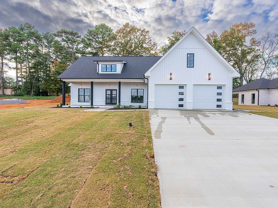 tankless water heater ensures you will never run out of hot water. The laundry room is large with lots of cabinetry for storage and an area for folding as well as a hanging rod. The secondary bedrooms are on the other side of the house as well as the secondary bathroom. There is also a half bath which is super convenient and helps keep your guests out of the main baths. The incredible kitchen boasts a large island with pull up seating. Stainless Steel appliances are included. There is also a pantry. The covered back porch runs almost the entire length of the house, and the ceilings have beautiful, stained tongue and groove. Finally, there is a two-car garage.